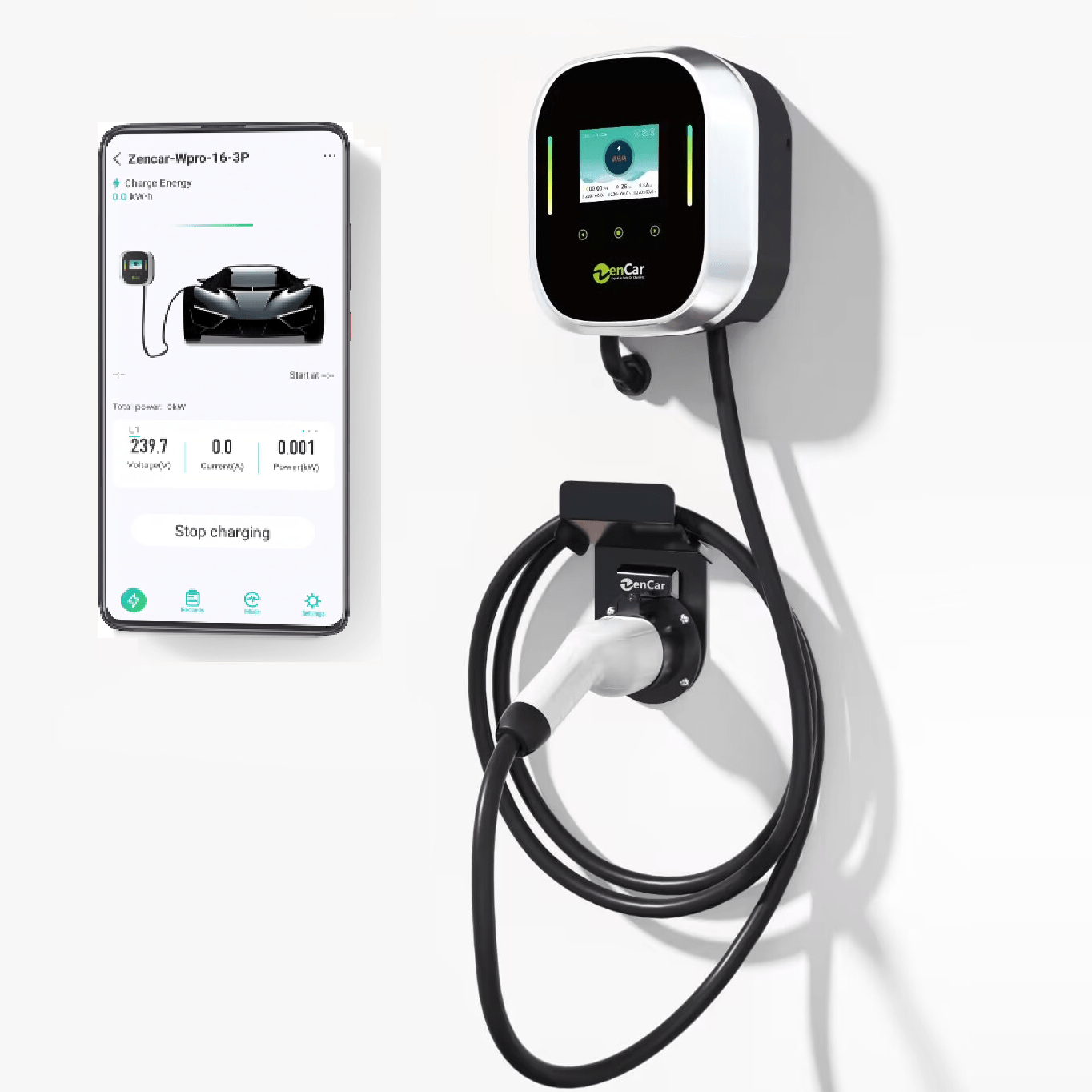 A ZENCAR Wallbox 7,4 kW (max. 1×32 Amperes) teljesítményű fali töltő kompatibilis az összes Type 2 csatlakozós elektromos és plug-in hibrid autóval.